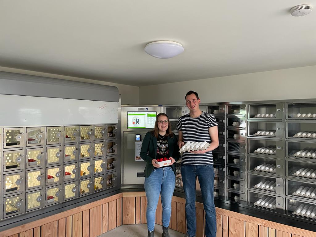 In 2019 opende wij onze eierautomaat, waarin we eieren van Geert z’n werk en kersen van de boomgaard van Steffi haar thuis verkochten.
